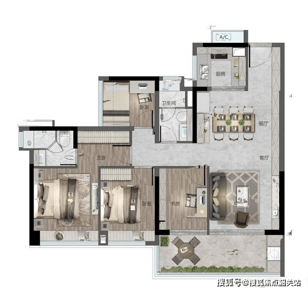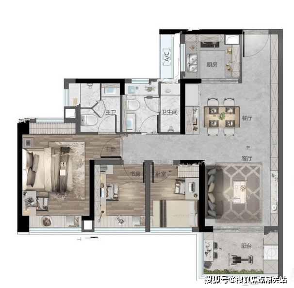 要关心户型的适用性和得房率,86㎡户型通过巧妙设想,
